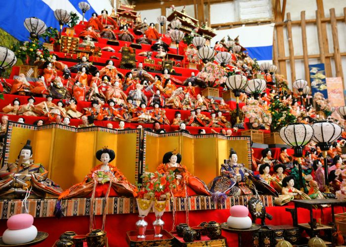 写真↓のように、華やかなひな人形が壮麗壮大に飾られています。