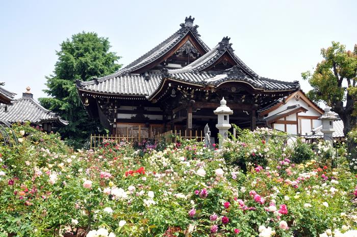 春と秋のバラ、夏の風鈴などで親しまれるおふさ観音。明治初期建築の本堂(回廊式)には、ご本尊十一面観音像、不動明王像、千手観音像、阿弥陀如来像などが祀られています。
