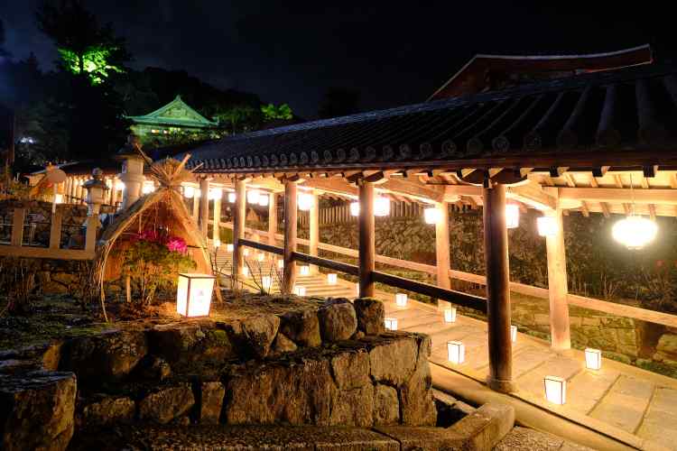 除夜の鐘、登廊にともる明かり、しあわせな一年を願う長谷寺の万燈会。