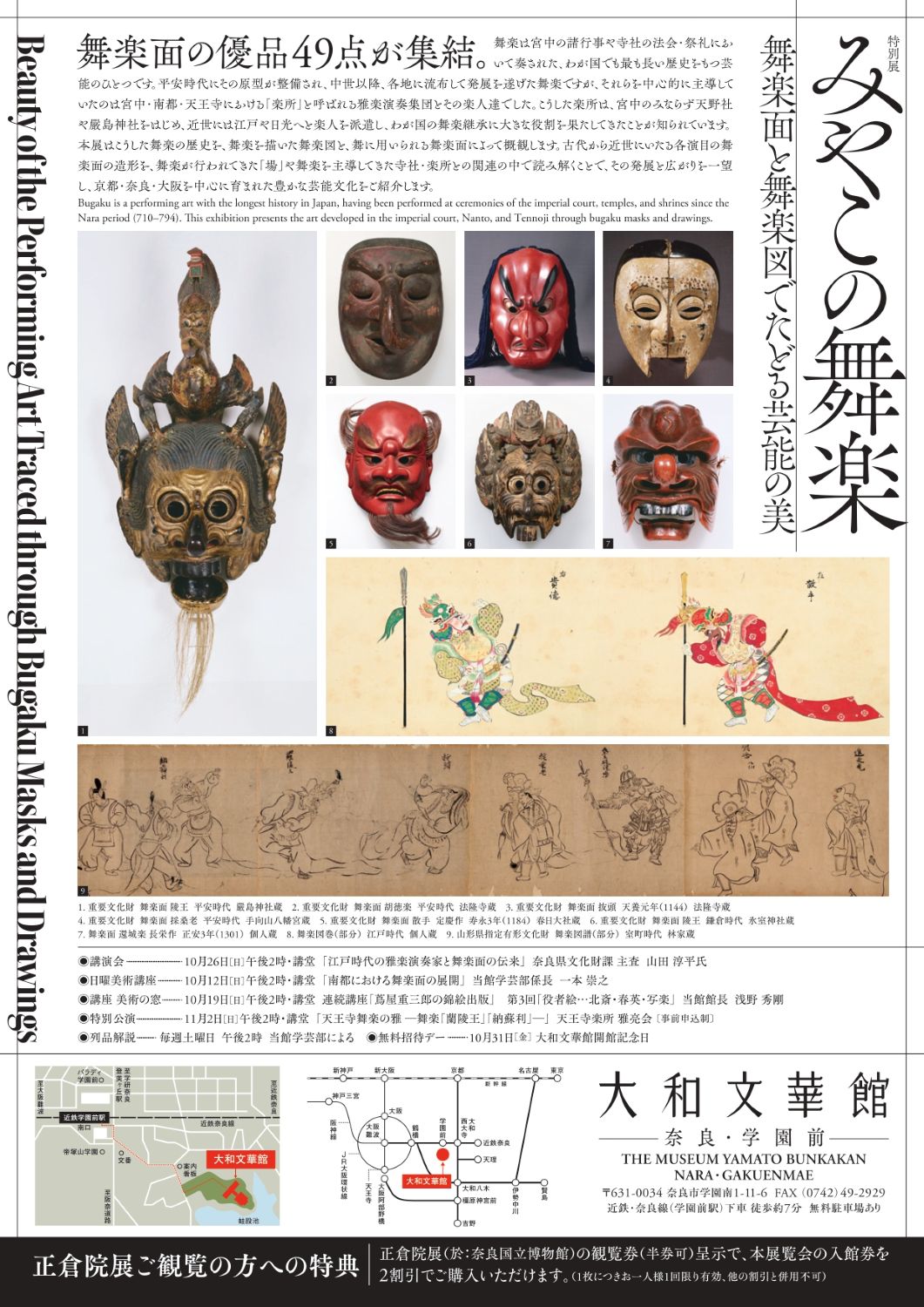 行事・イベント名 | 特別展 みやこの舞楽―舞楽面と舞楽図でたどる芸能の美―(大和文華館) |