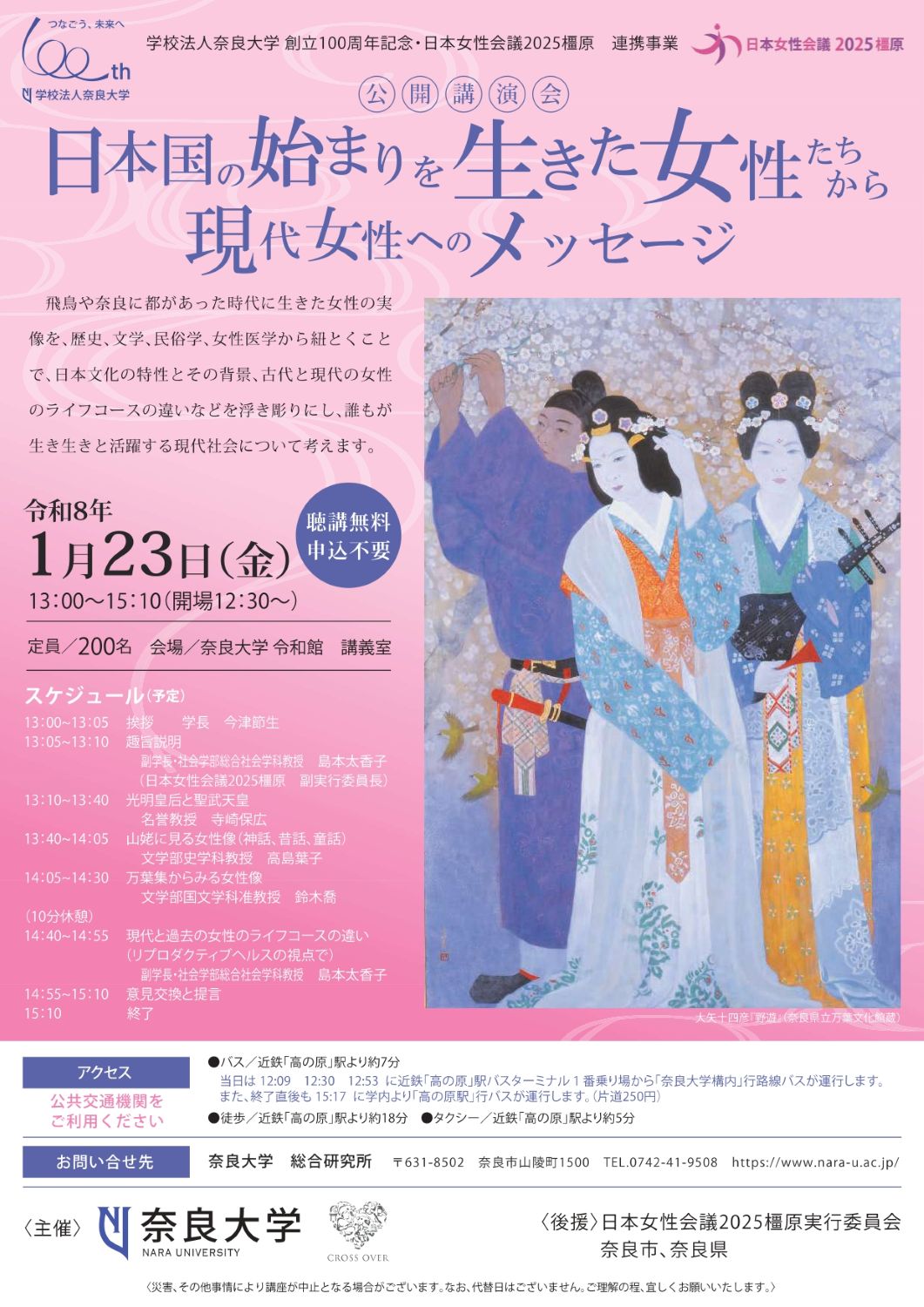 | 行事・イベント名 | 公開講演会「日本国の始まりを生きた女性たちから 現代女性へのメッセージ」(奈良大学) |