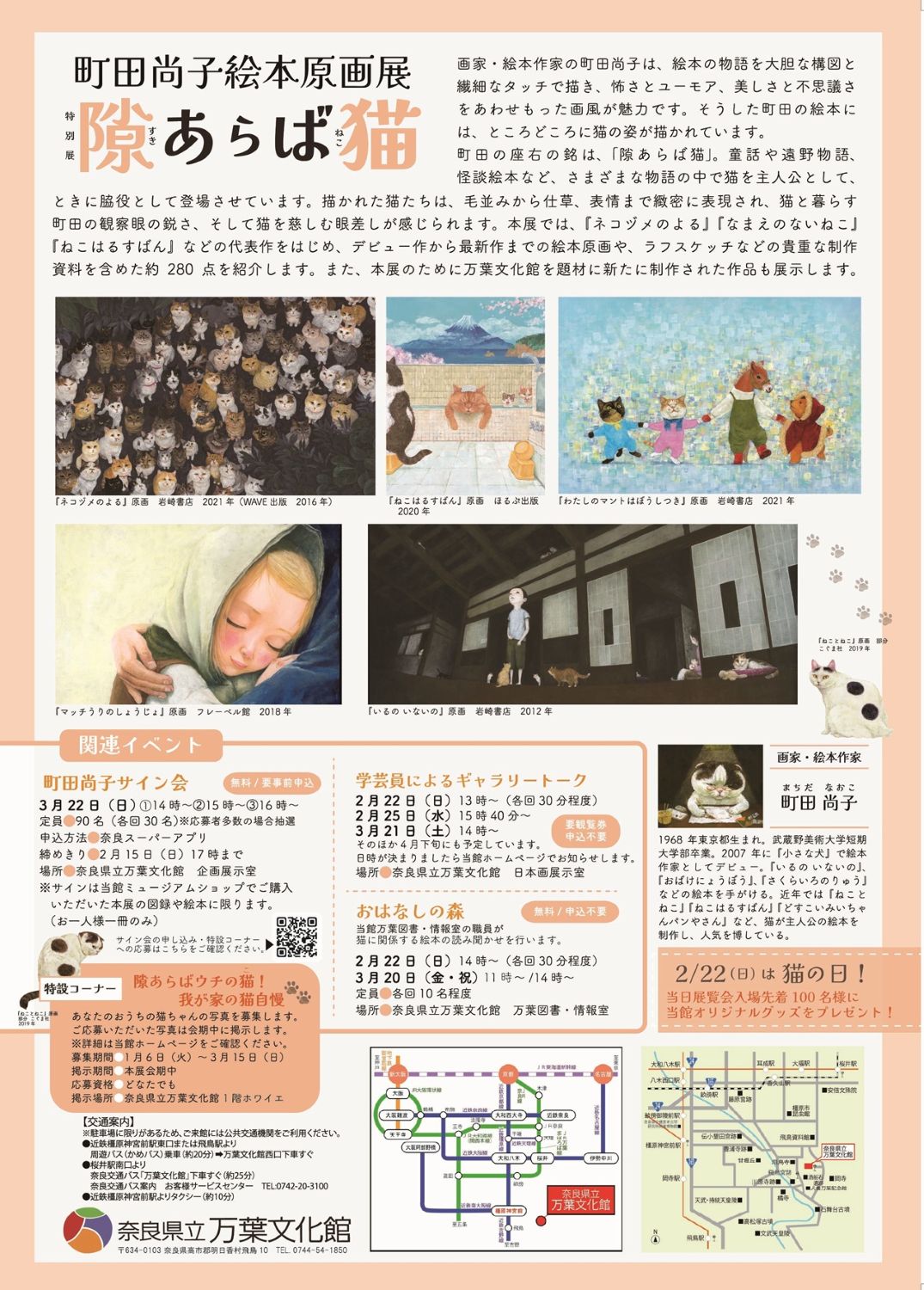 | 行事・イベント名 | 特別展 隙あらば猫 町田尚子絵本原画展(奈良県立万葉文化館) |