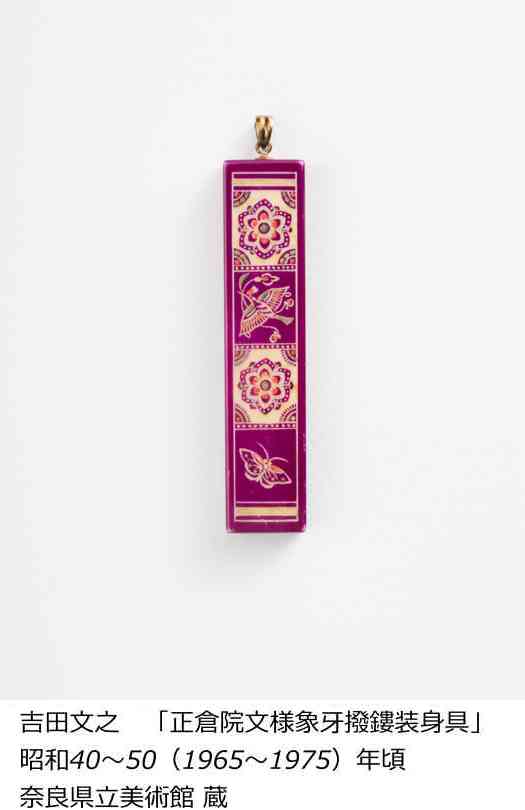 …正倉院宝物にも見られる撥鏤。この技術を追究し、奈良で活躍したのが吉田文之です。令和6年度に寄贈された吉田文之の作品2点を本展で初公開するとともに、文化財模造から創作までこなしたその幅広い作品を紹介します。