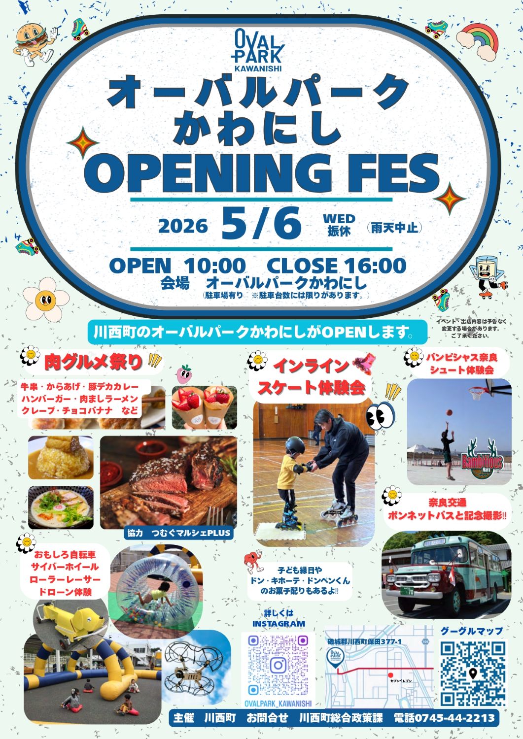 日本初の国際規格に準拠したオーバルトラックを有するスポーツ施設が川西町にオープン! インラインスケート体験会、バスケットボール・バンビシャス奈良シュート体験会、肉グルメ祭りなど、オープニングフェスタ開催!