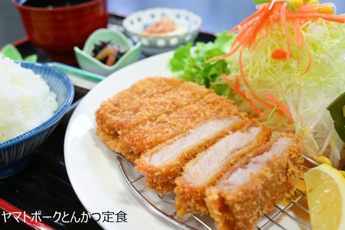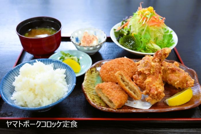 ヤマトポークのとんかつ定食、ヒレカツ定食、コロッケが名物。特製からあげ定食もボリューム満点。その他にもメニューが豊富で、食事だけでもと立ち寄る人も少なくありません。