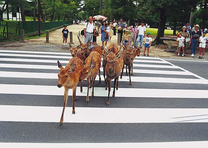 公園エリアに入ると、奈良に来てくれたことに感謝するかのように、たくさんの鹿たちが出迎えてくれます。鹿を驚かさないようにやさしく近づいて、ぜひ記念撮影を。鹿せんべいをあげると、とっても喜んでくれます。