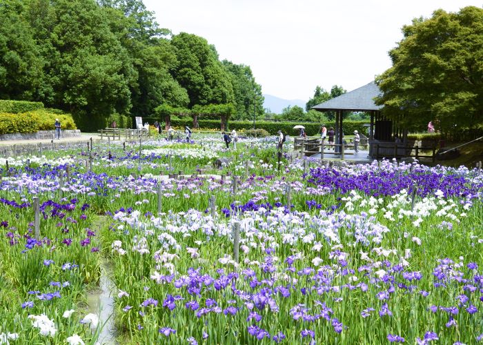 馬見丘陵の古墳群や自然環境を保全する目的で整備された広域公園。季節の花木が植えられている園内を自由に散策したり、写真撮影をしたりできるほか、イベントや園芸関係の講習会など、人と自然を結ぶ役割を果たしています。