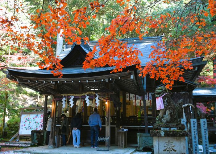 上社・下社の社殿や八つの境内社のほか、鳥見山を登るルート、神武天皇聖蹟鳥見山中霊畤顕彰碑などがあります。新緑や紅葉など、四季の彩りを楽しみに来る参拝者も少なくありません。